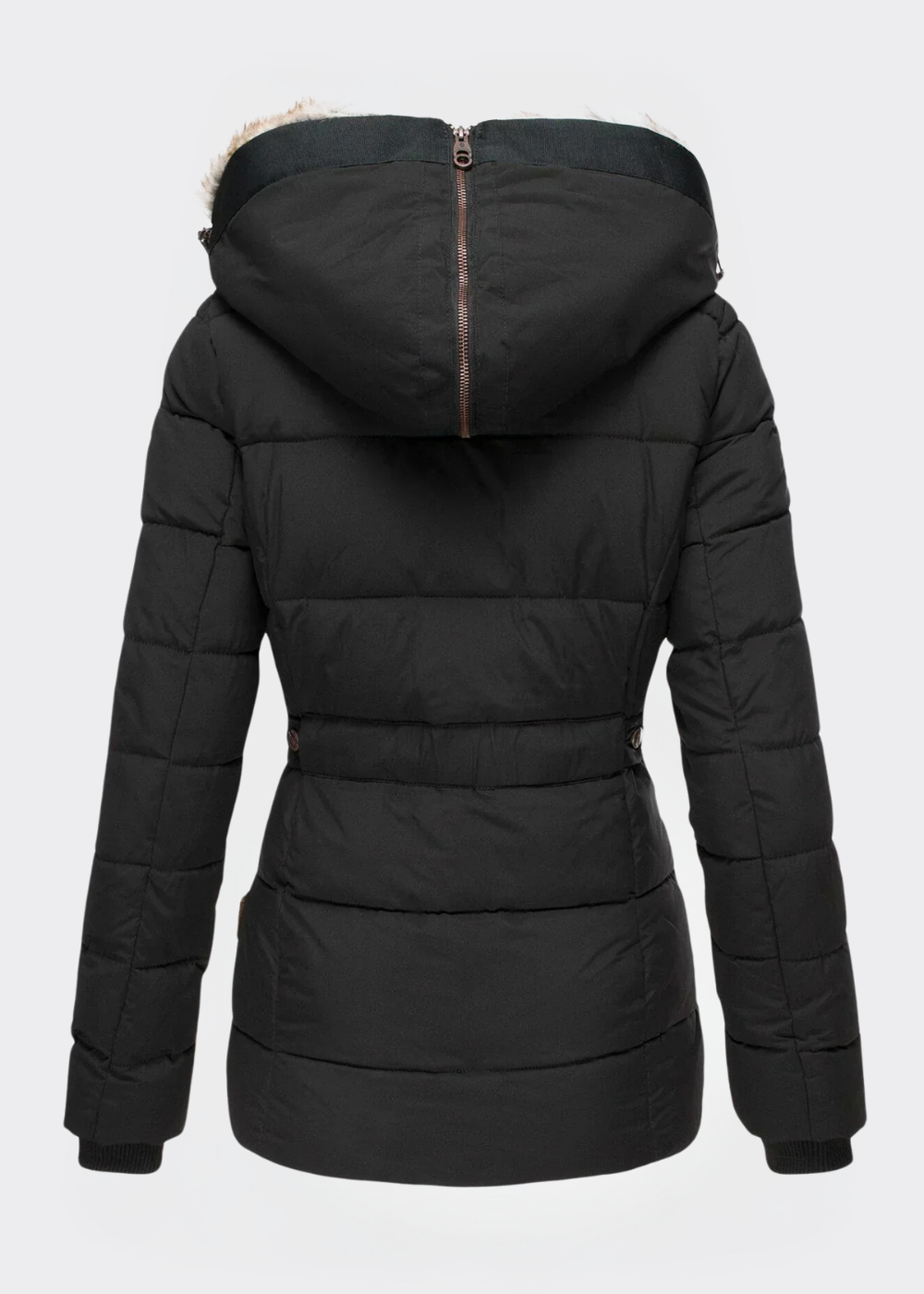 Futro damskie zostało wykonane ze sztucznego materiału o miękkiej strukturze. Klasyczny krój sprawia, że można je łatwo łączyć z codziennymi ubraniami. Odpowiednia długość zapewnia wygodę podczas noszenia w chłodniejsze dni.